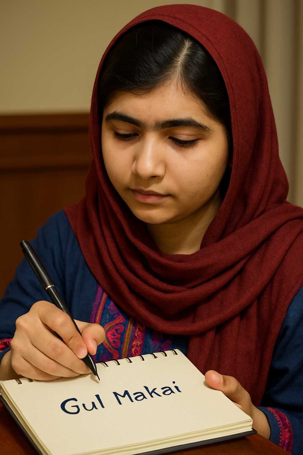 탈레반이 여학생의 등교를 막고 학교를 폭파하던 시기, 그는 BBC 우르두에 ‘굴 마카이(Gul Makai)’라는 필명으로 스와트 계곡의 일상을 기록합니다. 이 이름은 파슈툰 민담 속 여주인공에서 따온 것. 그녀는 직접 손으로 일기를 써서 현지 기자에게 건네고, 그 글은 스캔되어 BBC에 올라가는 아날로그 방식으로 세계에 전해졌습니다.
